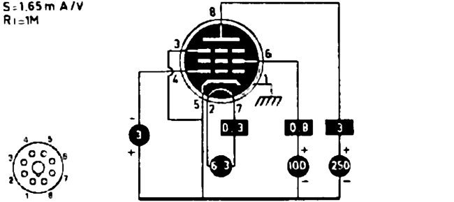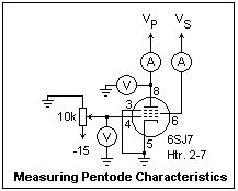 The circuit for measuring pentode characteristics is shown at the left. The tube