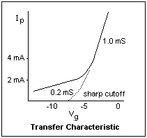 characteristic looks like the figure at the right. Above about 4 mA plate