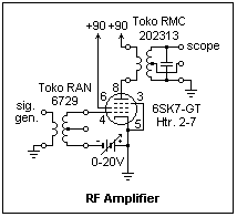 An RF amplifier using a 6SK7 remote-cutoff pentode is shown at the left. You